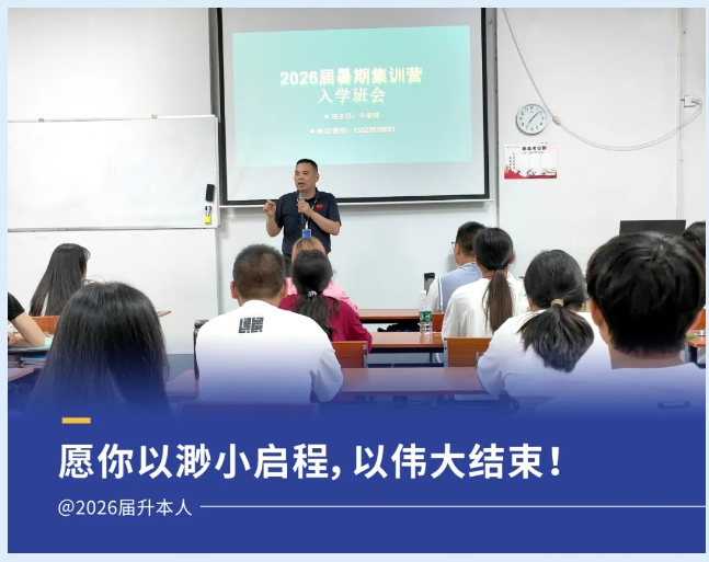 7月8日,我们满怀期待地迎来了好大夫教育2026届暑假集训营盛大开营。集训开营,不仅标志着一段全新学习旅程的启航,更似冲锋号角,激荡起每一位学员的激情与斗志。在顺利办理完入营手续后,晚上举行了入学班会。现场气氛热烈,班主任由好大夫老师担任主持。 ![]() 好大夫老师以温暖的话语开场,对远道而来的每一位学子表示了热烈的欢迎,并寄语大家:“在接下来的日子里,让我们携手并进,用汗水浇灌梦想,以坚持铸就辉煌。好大夫教育将是你们最坚实的后盾,让我们一起为升本之路铺设坚实的基石。” 梦想启航,升本逐梦 随后,河南益学执行副总翟传通详细阐述了本次集训营的深远意义与核心目的。 ![]() 他表示:本次集训营是好大夫教育为2026届升本学员提供的重要学习平台,汇聚了雄厚的师资,制定了科学的教学规划,旨在帮助大家高效备考,实现专升本梦想。相信在全体师生的共同努力下,本期集训营定能取得圆满成功,不仅要传授学生知识,更要激发潜能,培养更好的学习习惯并提升学习能力。希望每位同学能够珍惜这次学习机会,以饱满的热情和坚定的信念,投入到紧张而充实的集训中。最后,祝愿每位学员都能在这里收获满满,实现自我超越,迈向更加辉煌的未来! 优质师资,专业引领 ![]() 好大夫教育阶段长任老师就本次集训营,从教学目标与定位、教学内容与课程设置、教学方式与时间安排、师资力量与团队建设等方面做了详细阐述,并强调好大夫教育2026届升本暑假集训营将以严谨的教学态度、科学的教学规划、雄厚的师资力量为学子们提供优质的备考服务,确保学生的每一分努力都能转化为实实在在的进步。 明确目标,砥砺前行 ![]() 好大夫教育的老师们为每位学员分发了教材、水卡等用品。随后,通过自我介绍,大家增进了了解,建立了友谊。 ![]() 通过班长选举,大家更是展现出了团结协作、勇于担当的精神风貌。相信在未来的日子里,他们一定能够携手并进,共同创造更加辉煌的成绩。 严格管理,自律成长 ![]() 良好的学习环境是成功的关键。好大夫教育2026届暑假集训营实行封闭式管理,确保每位学员都能全身心投入到学习中。同时,我们鼓励学员自我驱动,培养自律精神,让这段经历成为你人生中最宝贵的财富。 暑期超车,共赴未来 ![]() 每个暑期是一次“弯道超车”的机会,总有一群人在偷偷努力变优秀,总有一群人在向理想的本科院校去拼搏!在这里,你将遇见一群志同道合的伙伴,共同经历汗水与泪水交织的日子,一起分享成功与成长的喜悦。我们相信,通过大家的共同努力,定能在2026年的专升本考试中大放异彩,实现自己的本科梦想!