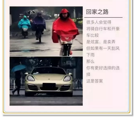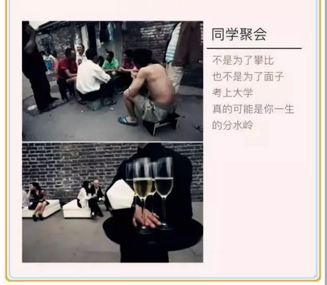 一帮不学无术的女孩聚在一起,号称所谓的姐妹,以为有了姐妹就有了全世界。他们在一起聊好吃的、聊穿的、聊化妆品、想的是网上购物、刷微信、刷微博、追韩剧; 而一帮无所事事的男孩聚在一起,号称所谓的哥们儿,以为有了哥们儿就有了天下。他们在一起逃课、抽烟、打扑克、玩游戏、看玄幻甚至约架......以为这就是疯狂,这就是该有的青春。 共8人,其中4名警战士每人配备一支冲锋枪。一天,出发前,一位西族老乡搭车去维西。其中4名警战士每人配备一支冲锋枪。一天,出发前,一位西族老乡搭车去维西那天路上积雪很大,雪下的路面坑洼不平,车子行驶一段就会被雪坞住。我们不得不经常下来推车。就在我们又一次下车推车的时候,一群褐黄色的东西慢慢向我们靠近。我们正惊疑、猜测时,纳西族老乡急喊:“快、快赶紧上车,是一群狼。”司机小王赶紧发动车,加大油门……但是很不幸,车轮只是在原地空转,根本无法前进。这时狼群已靠近汽车……大家看得清清楚楚——8只狼,个个都象小牛犊似的,肚子吊得老高。战士小吴抄起冲锋枪,纳西族老乡一手夺下小吴的抢。比较沉着地高声道:“不能开枪,枪一响,它们或钻到车底下或钻进树林,狼群会把车胎咬坏,把我们围起来,然后狼会嚎叫召集来更多的狼和我们拼命。”他接着说:“狼饿疯了,它们是在找吃的,车上可有吃的?”我们几乎同声回答:“有。”“那就扔下去给它们吃。”老乡像是下达命令。从来没有经历过这样的事,当时脑子里一片空白,除了紧张,大脑似乎已经不会思考问题。听老乡这样说,我们毫不犹豫,七手八脚把从丽江买的腊肉、火腿还有十分珍贵的鹿子干巴往下丢了一部分。狼群眼都红了,兴奋地大吼着扑向食物,大口的撕咬吞咽着,刚丢下去的东西一眨眼就被吃光了。老乡继续命令道:“再丢下去一些!”第二批大约50斤肉品又飞出了后车门,也就一袋烟的工夫,又被8只狼分食的干干净净。吃完后8只狼整齐地坐下,盯着后车门。这时,我们几人各个屏气息声,紧张的手心里都是冷汗,甚至能够清晰的听到自己心跳的声音……我们不知道能有什么办法令我们从狼群中突围出去。看到这样的情形,老乡又发话道:“还有吗?一点不留地丢下,想保命就别心疼这些东西了!”此时,除了紧张、害怕还有羞愤……!作为战士,我们是有责任保护好这些物资的,哪怕牺牲自己。但是现实情况是我们的车被坞到雪地里出不来,只能被困在车里。我们的子弹是极有限的,一旦有狼群被召唤来,我们会更加束手无策。我们几人相互看了一眼,迟疑片刻,谁也没有说什么,忍痛将车上所有的肉品,还有十几包饼干全都甩下车去!8只狼又是一顿大嚼。吃完了肉,它们还试探性的嗅了嗅那十几包饼干,但没有吃。这时我清楚地看到狼的肚子已经滚圆,先前暴戾凶恶的目光变得温顺。其中一只狼围着汽车转了两圈,其余7只狼没动。片刻,那只狼带着狼群朝树林钻去......不可思议的事情发生了……不一会儿,8只狼钻出松林,嘴里叼着树枝,分别放到汽车两个后轮下面。我们简直不敢相信自己的眼睛……这些狼的意思是想用树枝帮我们垫起轮胎,让我们的车开出雪窝。我激动地大笑起来……哈……哈……刚笑了两声,另外一个战士忙用手捂住了我的嘴,他怕这突兀的笑声惊毛了狼。接着,8只狼一齐钻到车底,但见汽车两侧积雪飞扬。我眼里滚动着泪花,大呼小王:“狼帮我们扒雪呢,赶快发动车,”车启动了,但是没走两步,又打滑了。狼再次重复刚才的动作:“先往车轮下垫树枝,然后扒雪……”。就这样,每重复一次,汽车就前进一段,大约重复了十来次。最后一次,汽车顺利地向前行了一里多地,接近了山顶。再向前就是下坡路了。这时,8只狼在车后一字排开坐着,其中一只比其他7只狼稍稍向前。老乡说:“靠前面的那只是头狼,主意都是他出的。”我们激动极了,一起给狼鼓掌,并用力地向它们挥手致意。但是这8只可爱的狼对我们的举动并没有什么反应,只是定定地望了望我们,然后,头狼在前,其余随后,缓缓朝山上走去,消失在松林中......看完不忍思考:连凶猛的狼都懂得报恩,我们是否应该反思自身?自诩为“万长”类,我们是不是应当让这个世 他们看不起那些不会化妆、不会打扮、一天到晚只知道读书的好学生。还骂那些好学生是书呆子,骂他们傻,只知道读书。殊不知,两三年后,好学生上一本,上211,上985,甚至上清华北大,而他们却要考虑去三本,去高职高专甚至考虑要不要南下打工。 有一段父子之间经典的对话,告诉了我们努力读书和不读书的大不同。